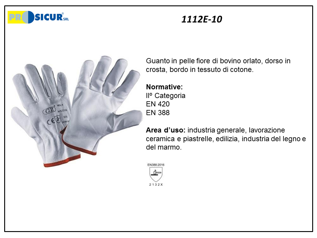 1112E-10 – (Quantità per Confezione: 12 PA) – Guanto pelle fiore bovino dorso crosta