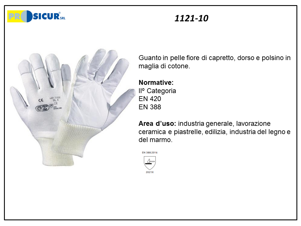1121-10 – (Quantità per Confezione: 12 PA) – Guanto pelle fiore capretto dorso in cotone