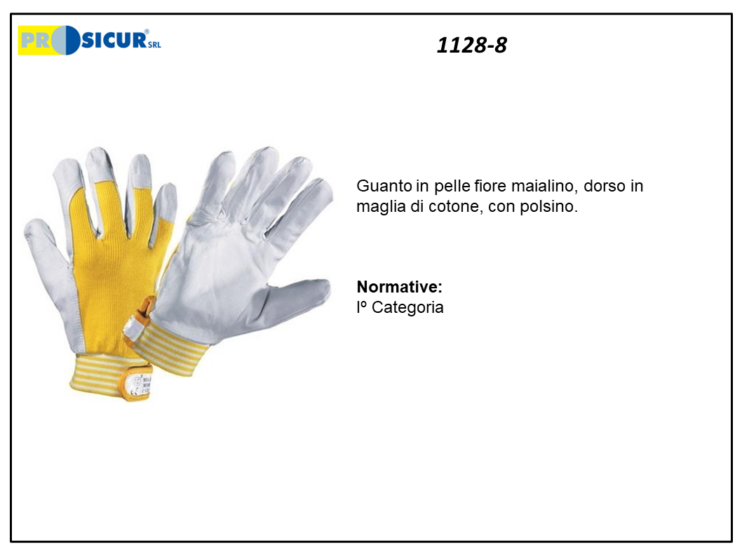 1128-8 – (Quantità per Confezione: 12 PA) – Guanto pelle capretto dorso in cotone chiusura c/strappo