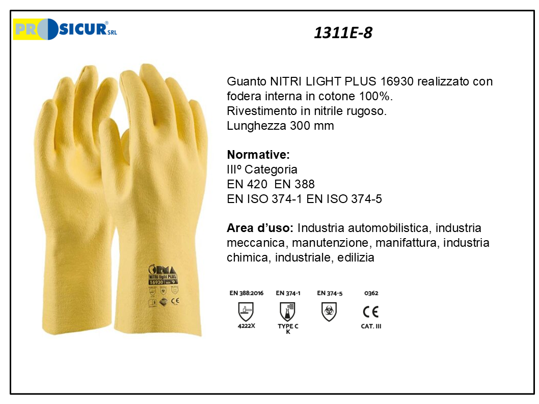 1311E – (Quantità per Confezione: 12 PA) – Guanto in nitrile rugoso fodera interna cot.100% l300mm