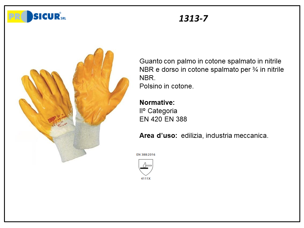 1313 – (Quantità per Confezione: 12 PA) – Guanto fodera cotone spalmato nbr leggero dorso areato