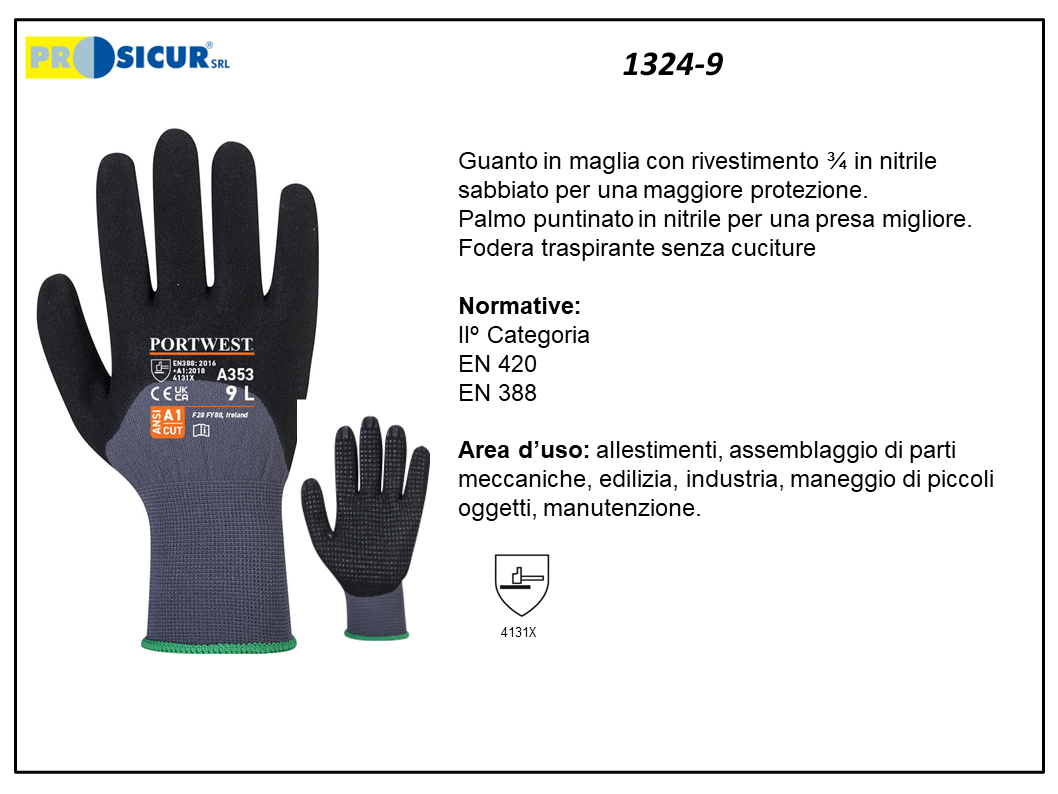 1324-9 – (Quantità per Confezione: 12 PA) – Guanto nylon/elastan rivestito3/4 schiuma nitrile puntinato