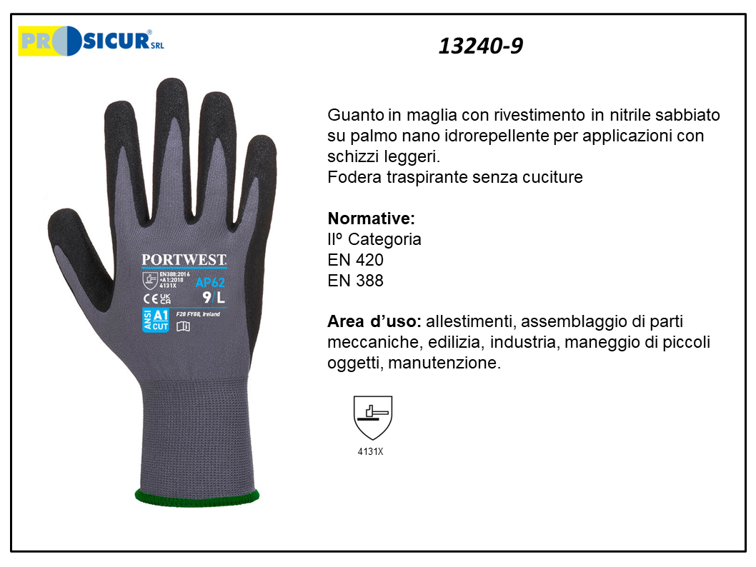13240 – (Quantità per Confezione: 12 PA) – Guanto nylon/elastane schiuma nitrile dorso areato