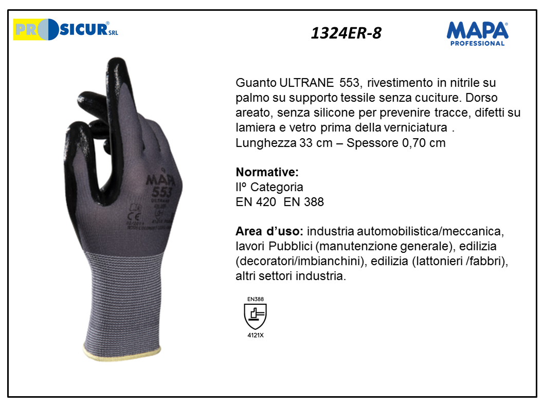 1324ER – (Quantità per Confezione: 10 PA) – 553 guanto ultrane riv.nitriledorso areato p/maglia