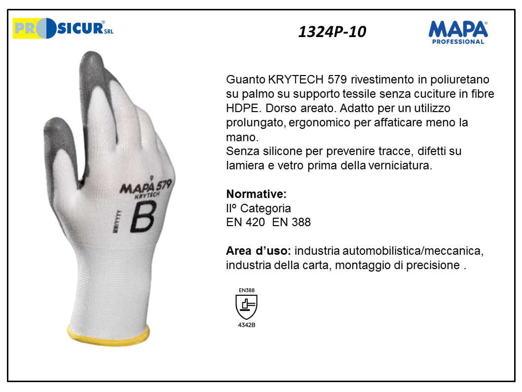 1324P-10 – (Quantità per Confezione: 12 PA) – 579 guanto krytech rivestito pu dorso areato cut b