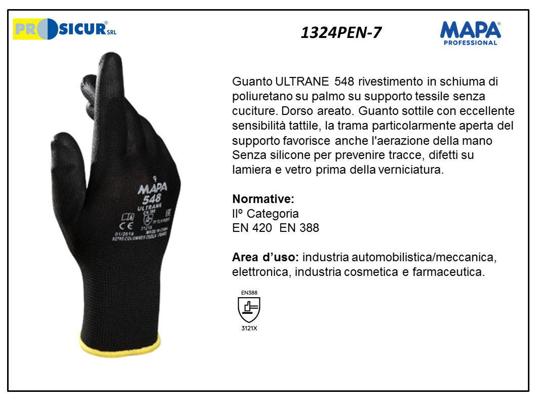 1324PEN – (Quantità per Confezione: 12 PA) – 548 guanto ultrane poliuretanodorso areato polso maglia nero