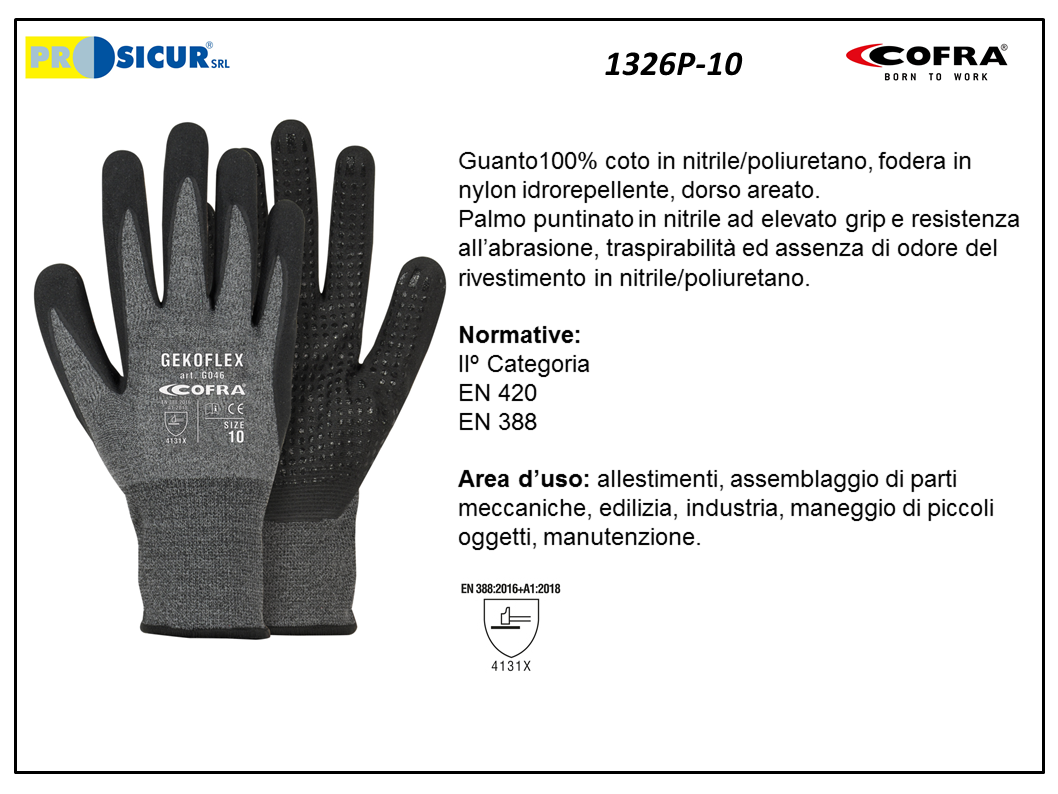 1326P – (Quantità per Confezione: 12 PA) – Guanto nylon rivest.nitrile/pupuntinato dorso areato