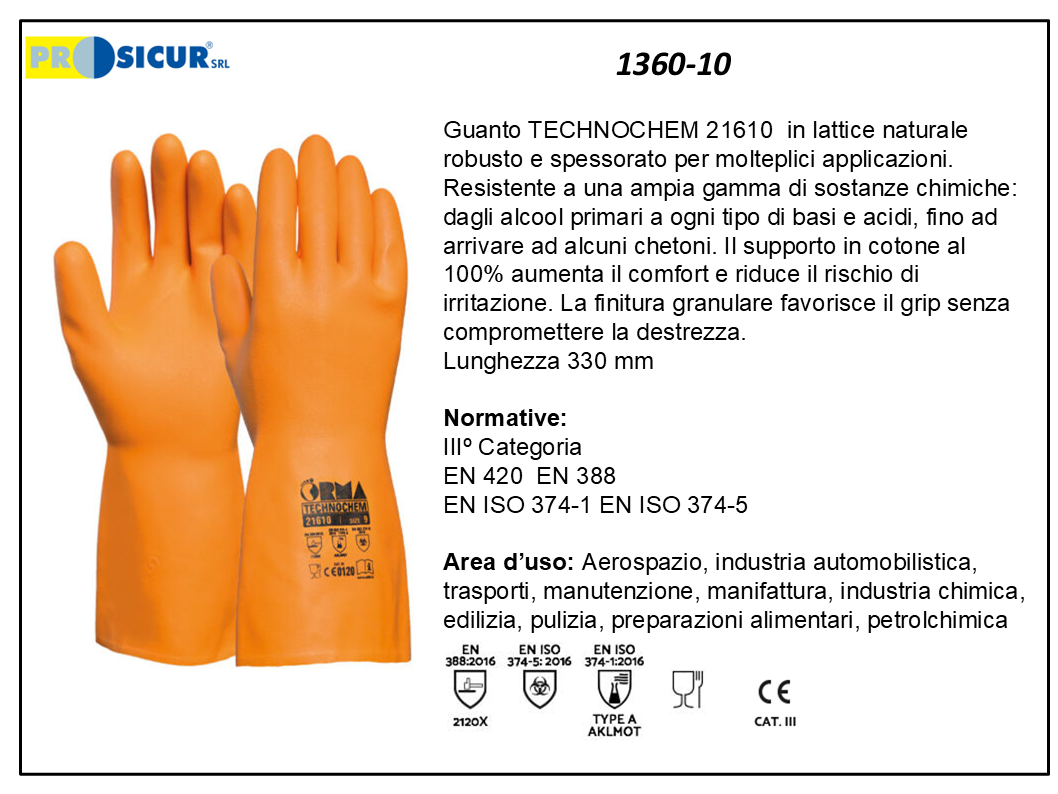 1360 – (Quantità per Confezione: 12 PA) – Guanto in lattice naturale supporto cot.100% l 330mm