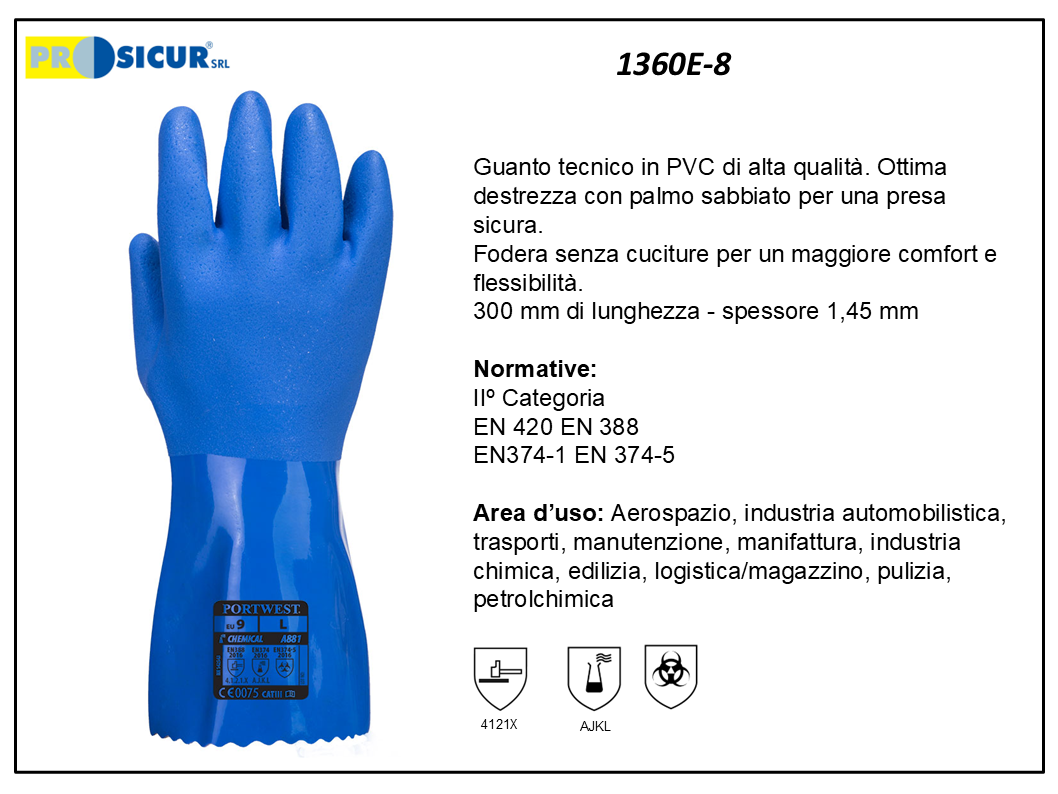 1360E-8 – (Quantità per Confezione: 12 PA) – Guanto tecnico in pvc senza cuciture lunghezza 300mm