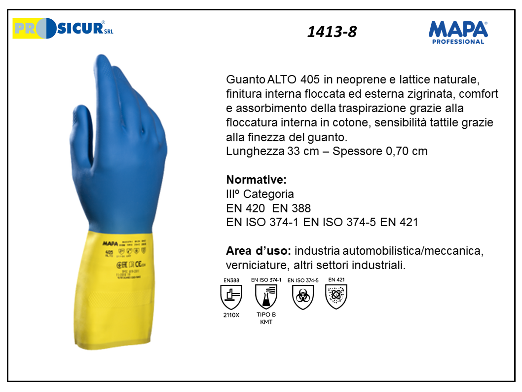 1413 – (Quantità per Confezione: 10 PA) – 405 guanto alto neoprene lattice l 33 cm