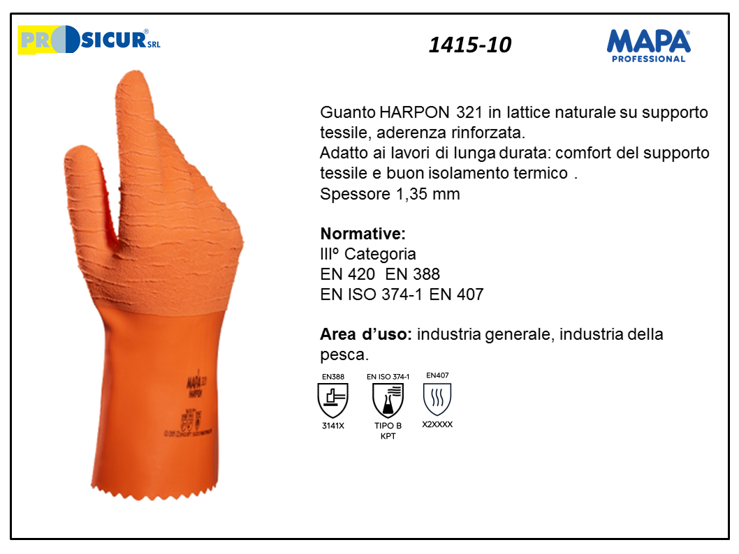 1415 – (Quantità per Confezione: 50 PA) – 321 guanto harpon lattice nat.aderenza rinforzata l 32 cm