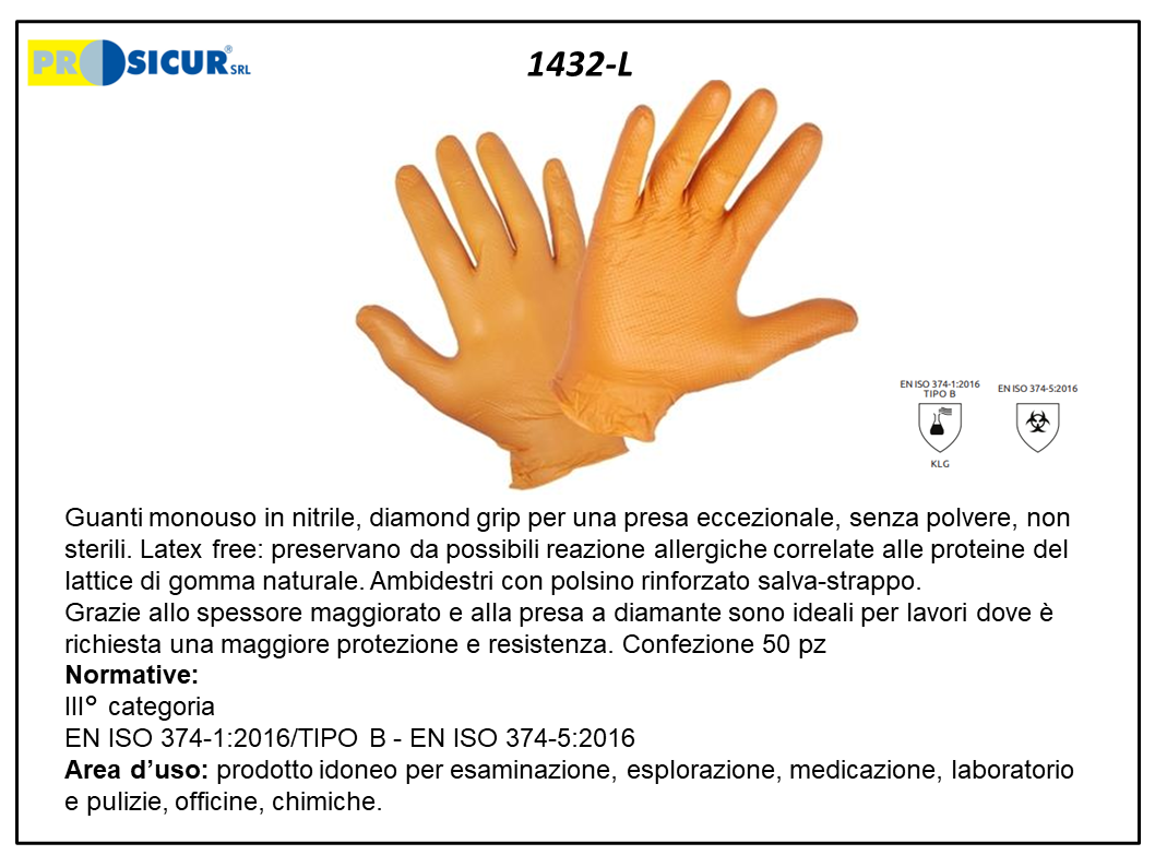 1432-L – (Quantità per Confezione: 10 CF) – Guanto nitrile spessorato senza polvere arancio