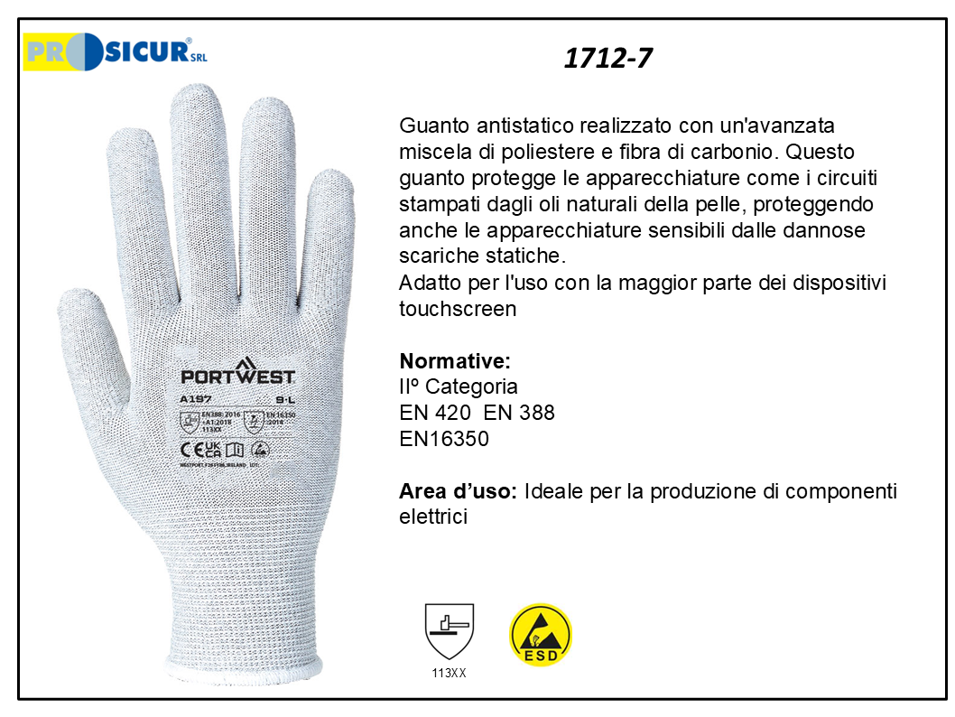 1712-7 – (Quantità per Confezione: 12 PA) – Guanto antistatico pes/fibra carbonio