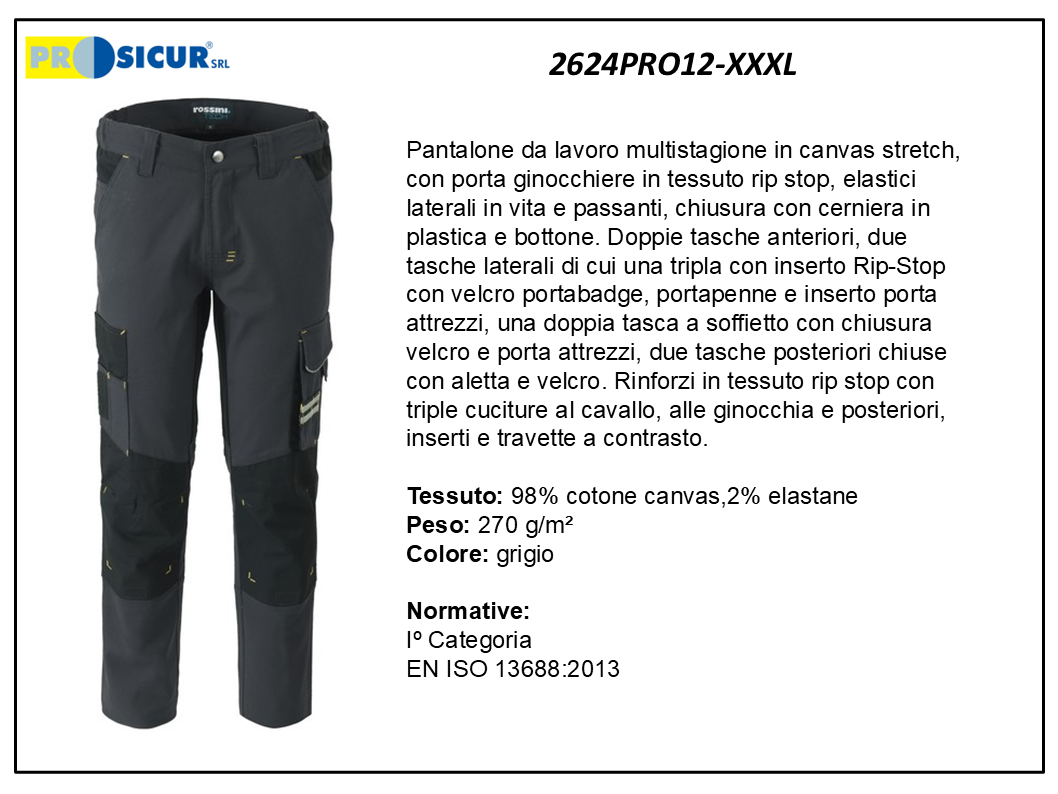 2624PRO12 – Pantalone 98%cotone canvas 2% elastan cavallo c/rinf.grigio