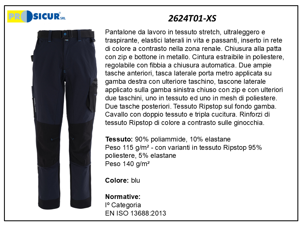 2624T01 – Pantalone 90%poliam.10%elastanlight multitasca 115gr