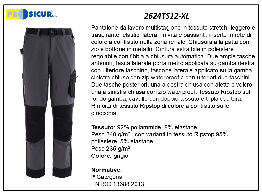 2624TS12 – Pantalone 92%poliam.8%elastan multistagione multitasca 240gr