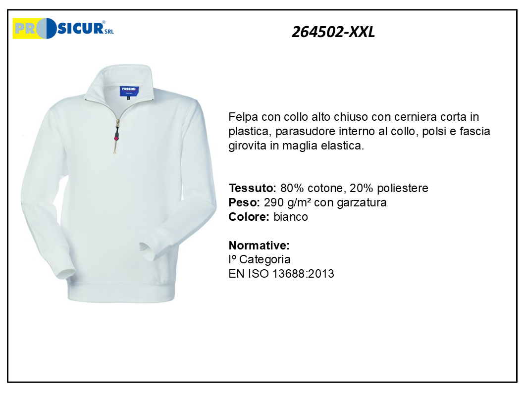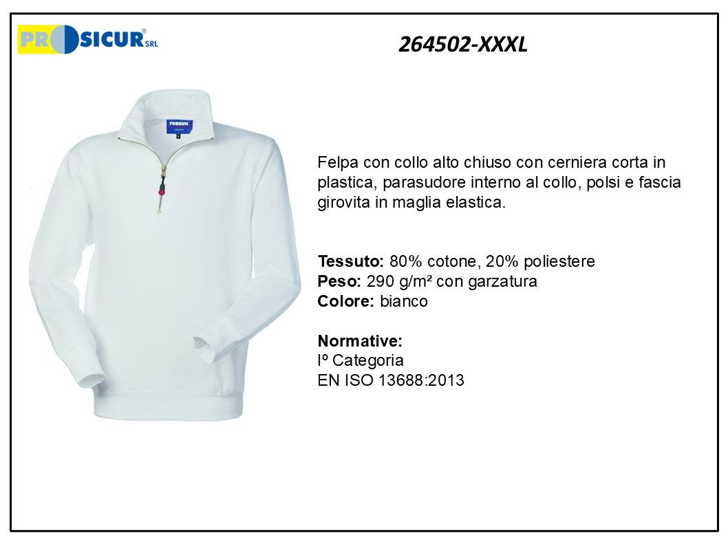 264502 – Felpa 20% pes 80% cotone mezzazip bianco