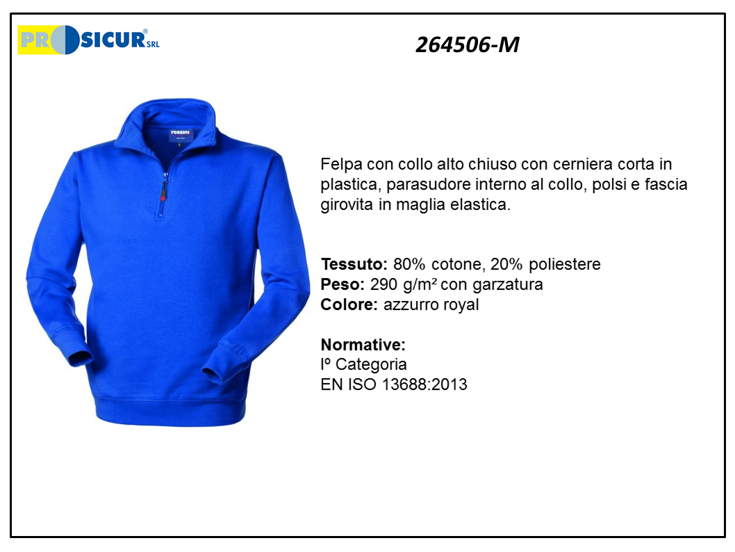 264506 – Felpa 20% pes 80% cotone mezzazip royal