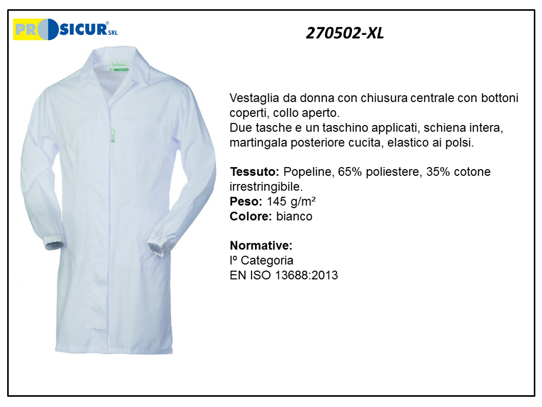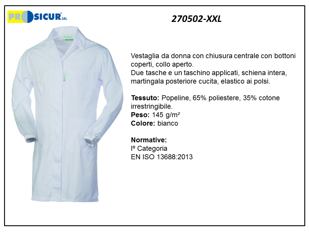 270502 – Vestaglia 65%poliest.35%cotonec/bottoni coperti bianco