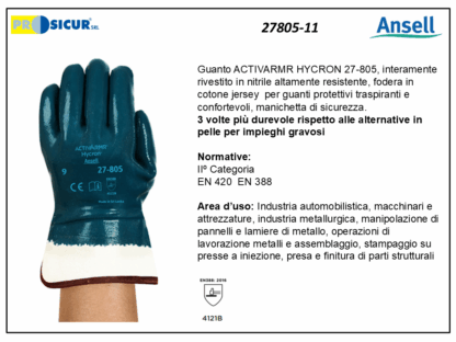 27805 – (Quantità per Confezione: 12 PA) – Guanto activarmr hycron riv. completo nitrile c/manichetta