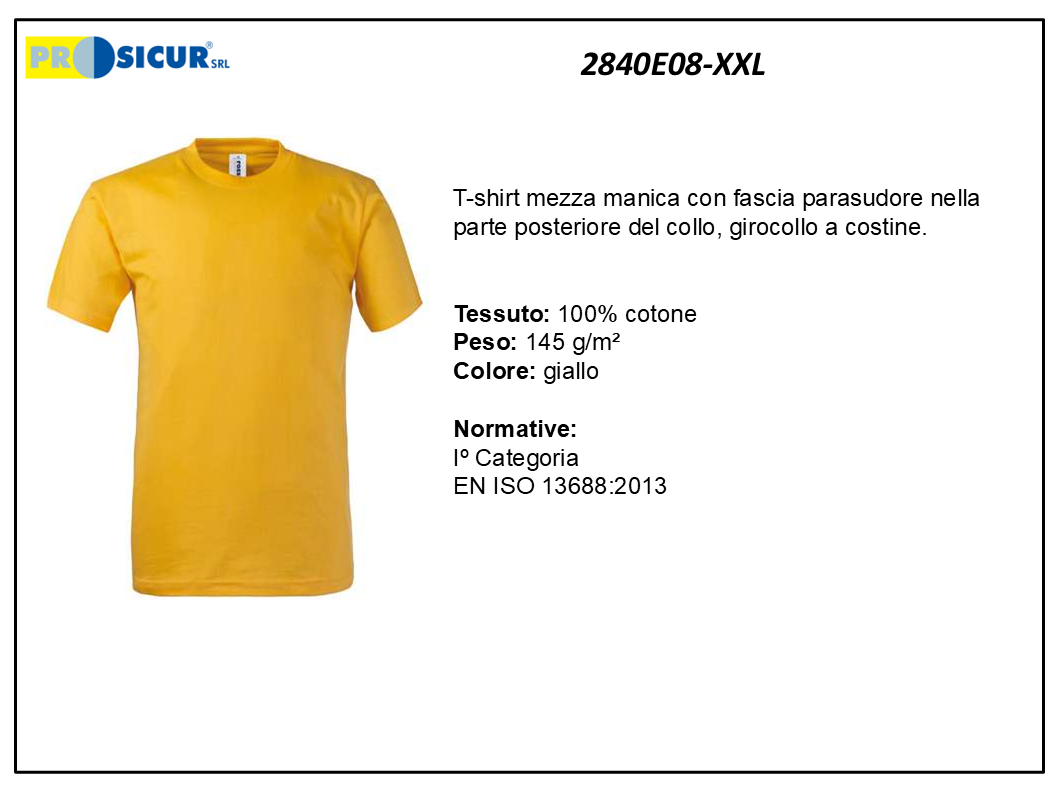 2840E08-XXL – (Quantità per Confezione: 2 PZ) – T-shirt girocollo 100% cotone giallo