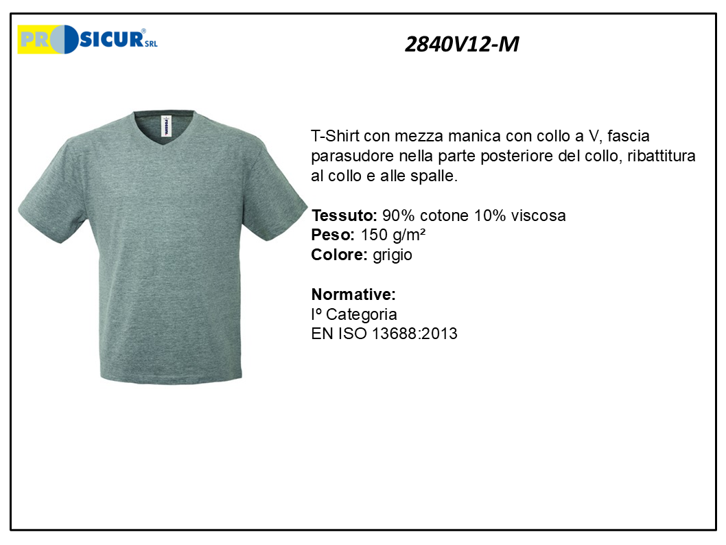 2840V12-M – (Quantità per Confezione: 10 PZ) – T-shirt collo a v 100% cotone grigio