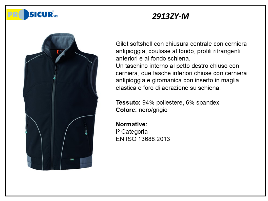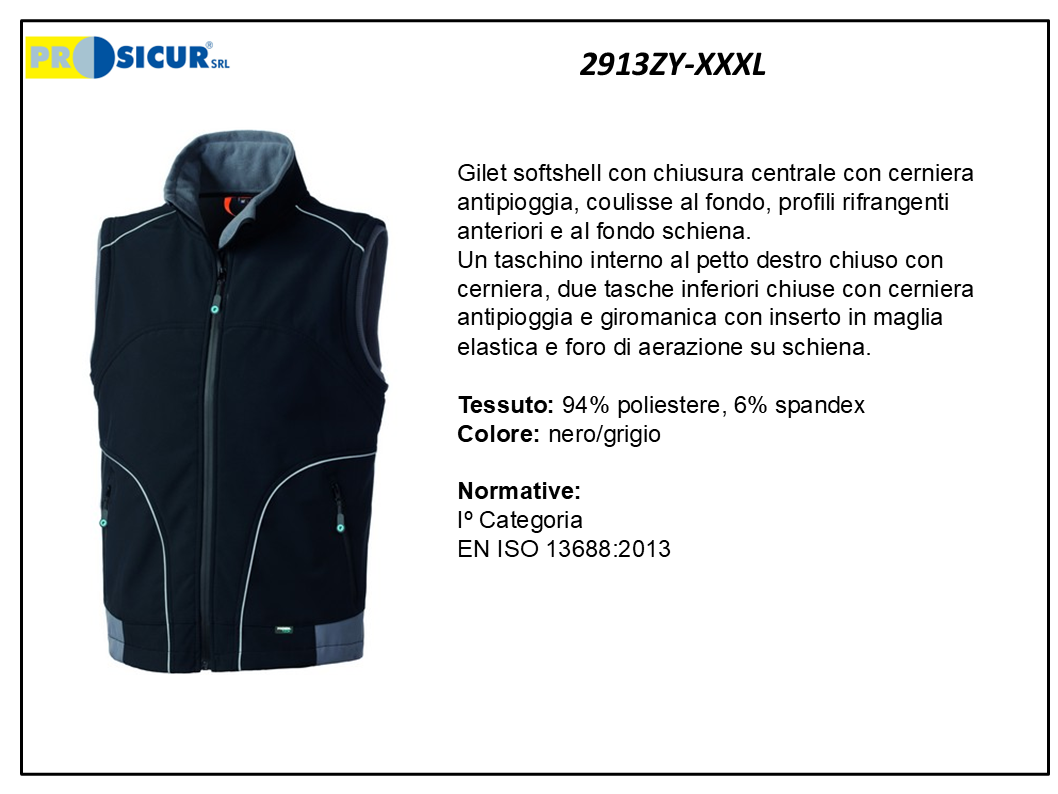 2913ZY – Gilet softshell 94%poliestere 6%spandex nero/grigio