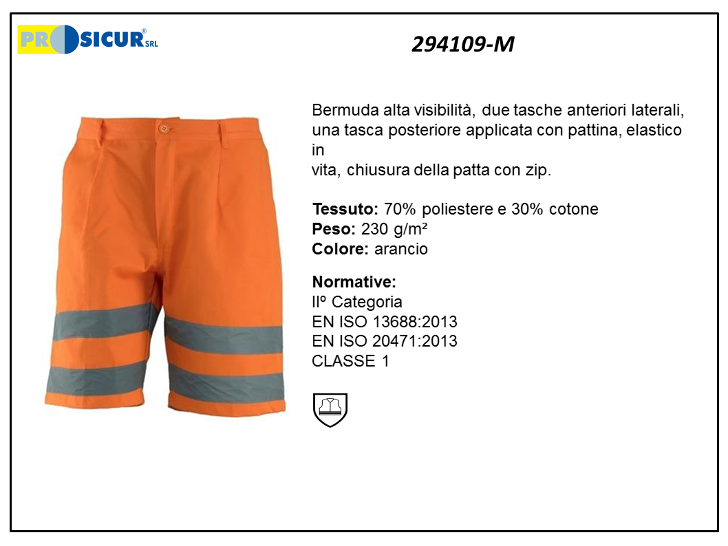 294109 – Bermuda av 60% cotone 40% pes bande rifrangenti arancio