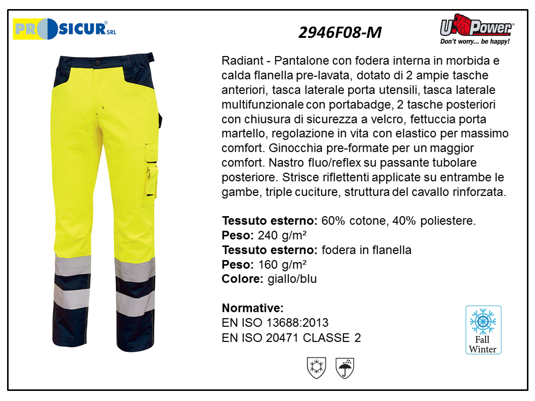 2946F08 – Pantalone av 60%cot.40%pes foderato in flanella giallo