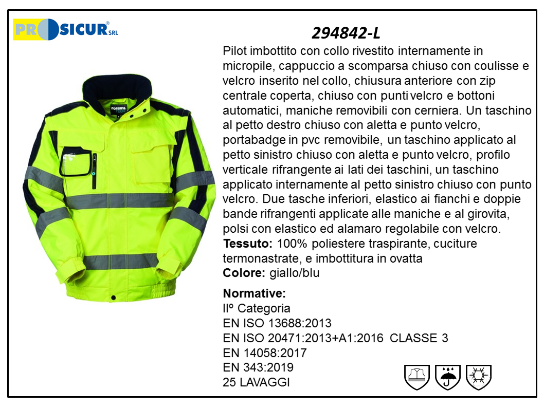 294842-L – Pilot imbottito 100%poliesteremaniche staccabili giallo/blu