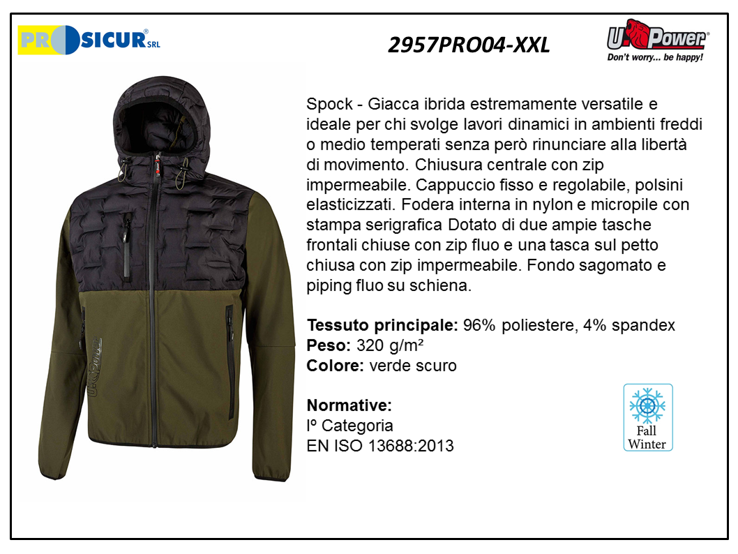 2957PRO04 – Spock-giacca polieste/spandex fodera micropile verde scuro