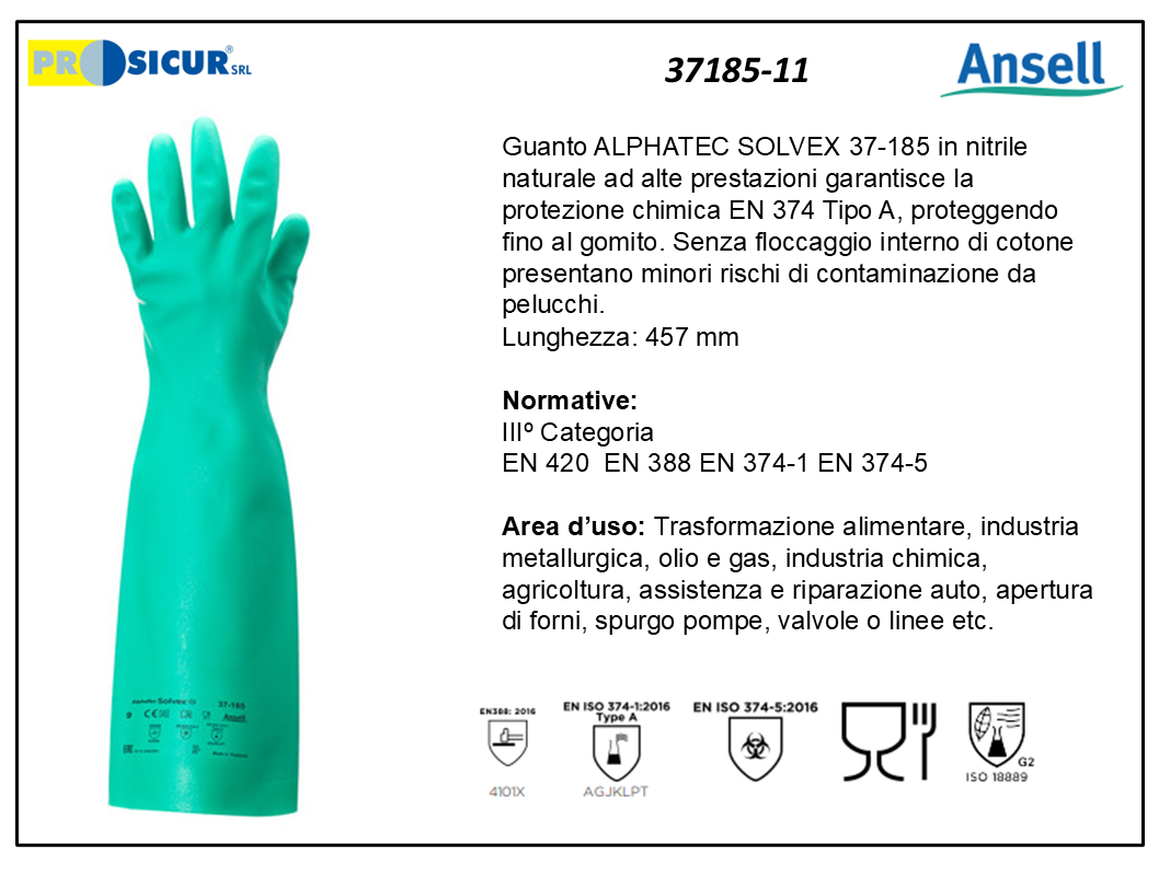 37185 – (Quantità per Confezione: 12 PA) – Guanto alphatec solvex nitrilesenza floccaggio cotone l457
