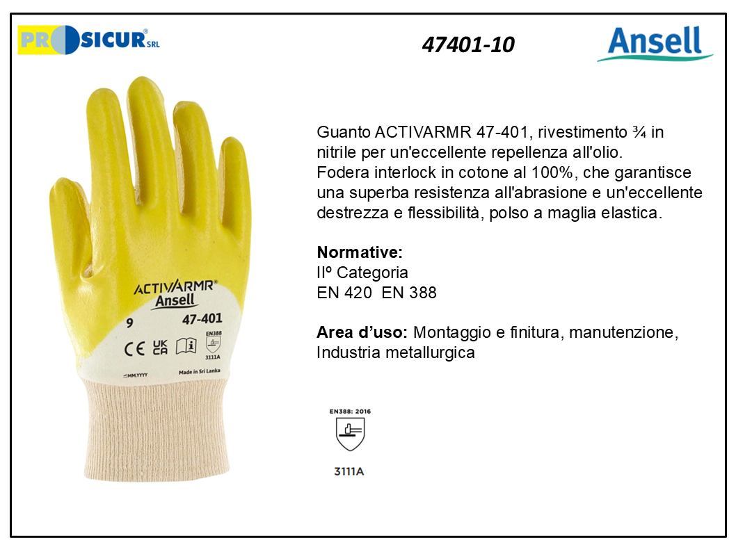 47401 – (Quantità per Confezione: 12 PA) – Guanto activarmr hylite riv.3/4 nitrile polsomaglia elastico