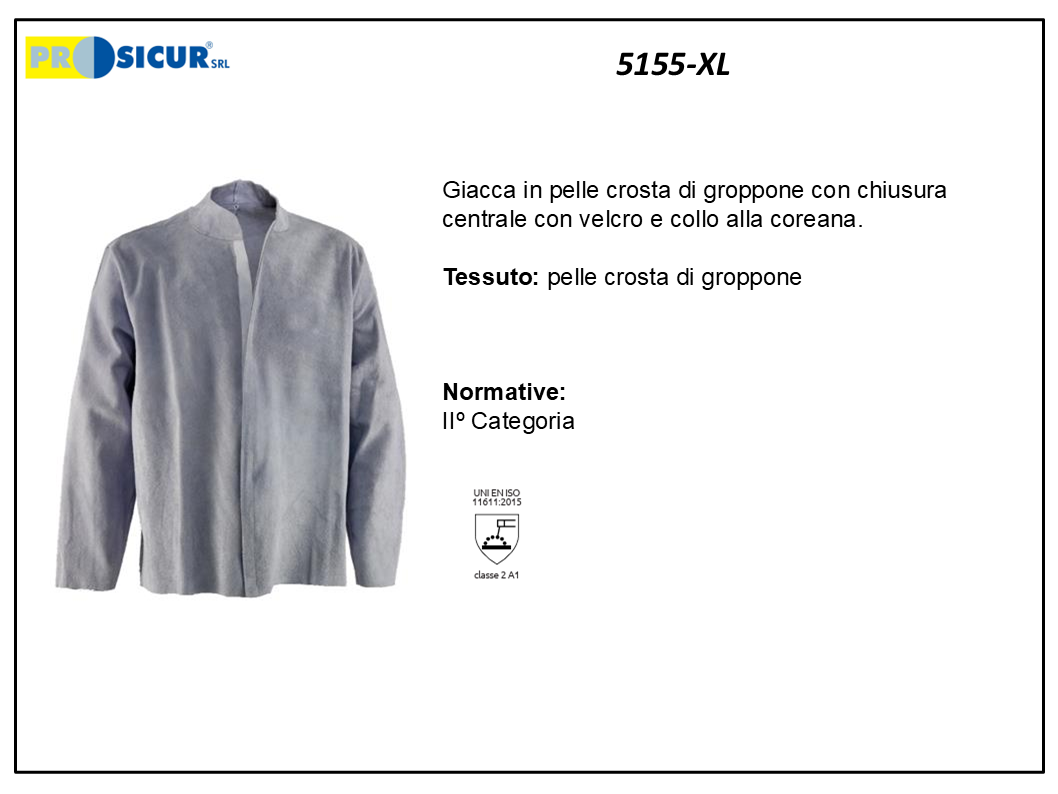 5155 – Giacca pelle crosta groppone chiusura centrale c/velcro