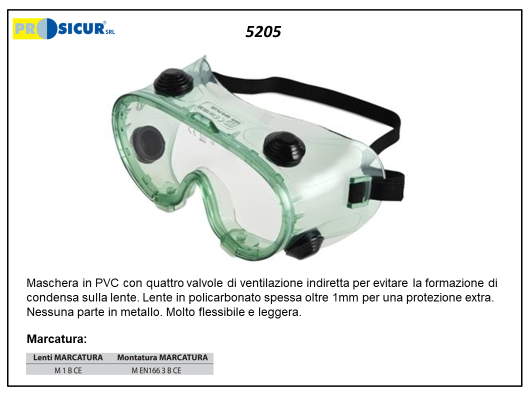 5205 – Maschera pvc 4 valvole ventil lente pc
