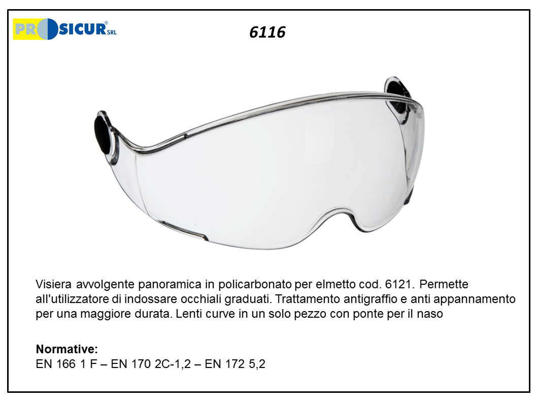 6116 – Visiera panoramica pc clear per elmetto cod.6121 – 6122