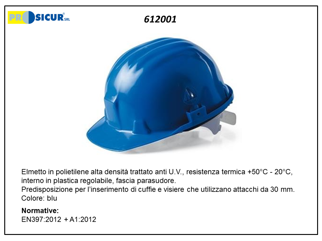 612001 – Elmetto di protezione c/fasciaantisudore colore blu