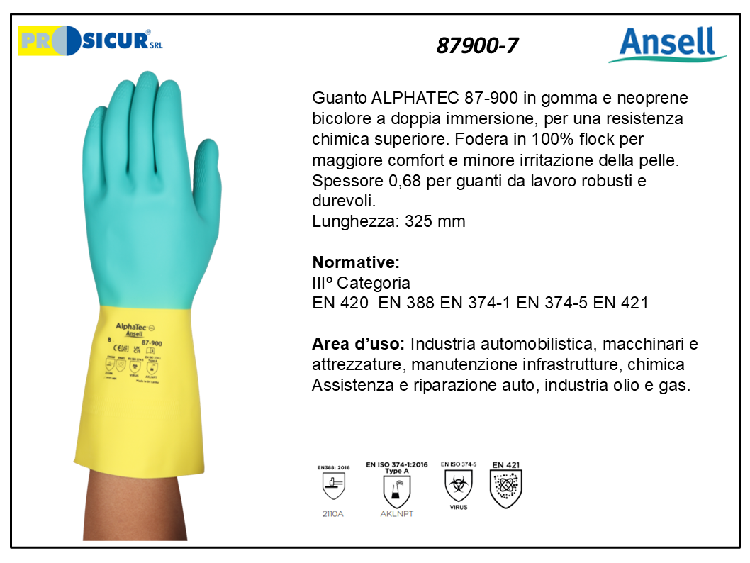 87900 – (Quantità per Confezione: 12 PA) – Guanto alphatec gomma/neoprenebicolore foderato l325mm