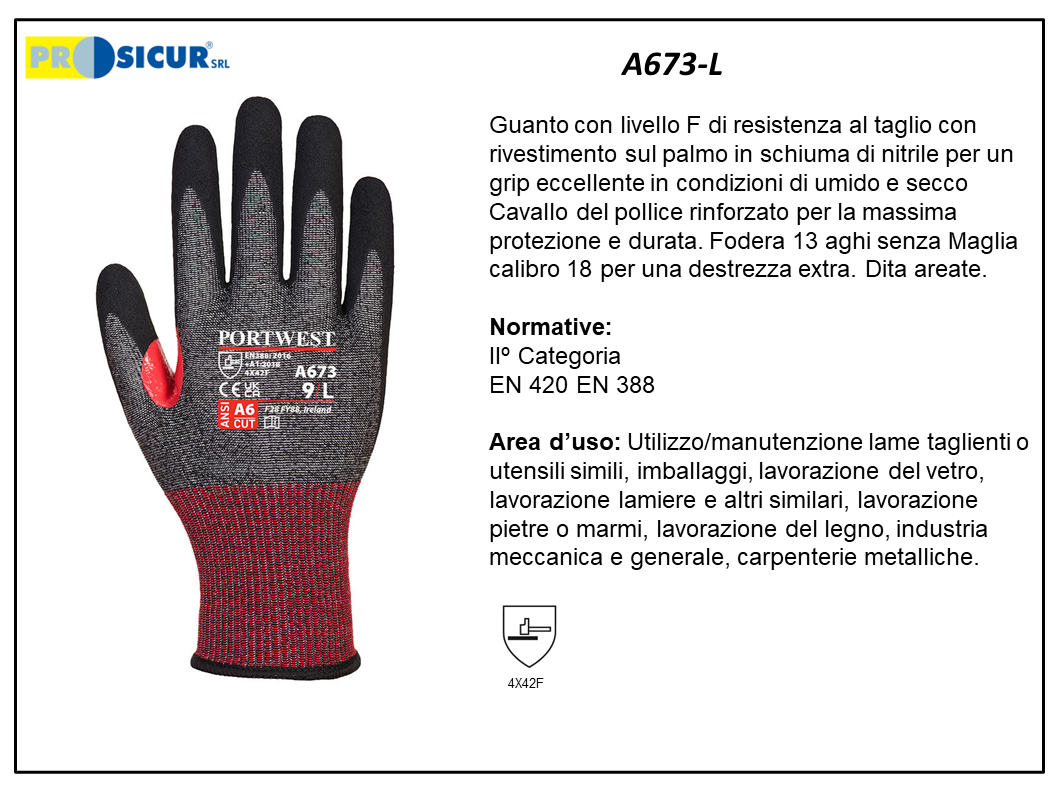 A673 – (Quantità per Confezione: 12 PA) – Guanto cs cut f18 nitrile resistenza taglio f tg 9