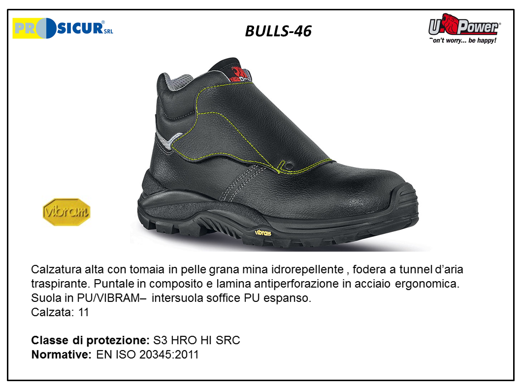 Calzatura U-POWER BULLS alta con tomaia in pelle grana mina idrorepellente , fodera a tunnel dÂ’aria traspirante. Puntale in composito e lamina antiperforazione in acciaio ergonomica.