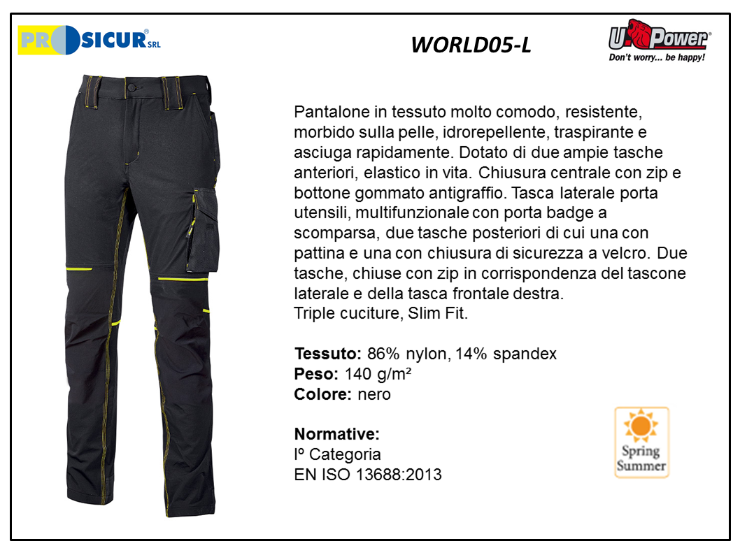 WORLD05 – Pantalone nylon/spandex 140gr slim fit multitasca nero