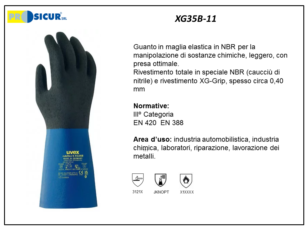 XG35B – (Quantità per Confezione: 10 PA) – Guanto cotone interamente riv.nbr e strato xg-grip l 350 mm